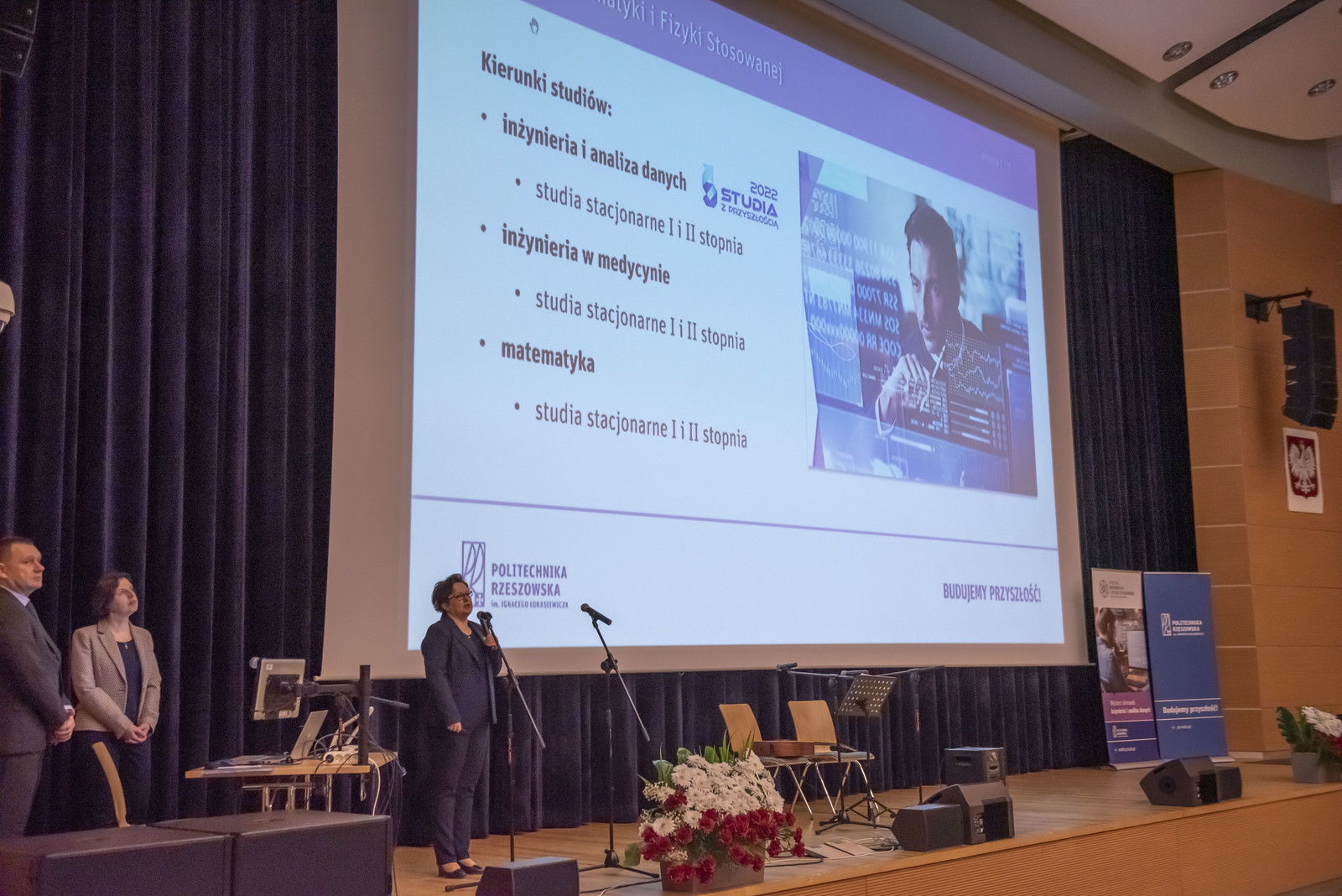 Podczas obu dni zgromadzoną młodzież uroczyście powitali rektor Politechniki Rzeszowskiej prof. dr hab. inż. Piotr Koszelnik oraz prorektor ds. kształcenia dr hab. Iwona Włoch, prof. PRz. Władze dziekańskie WMiFS w krótkiej prezentacji przedstawiły kierunki studiów prowadzone na wydziale oraz perspektywy zatrudnienia absolwentów. Inauguracje Dni Otwartych uświetniły występem artystycznym studentki kierunku matematyka Katarzyna Biela i Klaudia Bukała. Młodzież miała okazję uczestniczenia w wykładach i warsztatach, które zostały podzielone na trzy główne panele związane z kierunkami studiów: inżynierią i analizą danych, inżynierią w medycynie oraz matematyką. Panele zostały uzupełnione o pokazy z fizyki, a także o zwiedzanie wydziałowych laboratoriów oraz biblioteki. Wykłady, warsztaty i pokazy prowadzili nauczyciele akademiccy prowadzący zajęcia na wymienionych kierunkach, lekarze oraz pracownicy zaprzyjaźnionych dwóch firm medycznych ImplantCast i STRING, jak również studenci kół naukowych: Machine Learning, X-med oraz Foton. Podczas Dni Otwartych aktywny udział wzięli studenci z Wydziałowego Samorządu Studenckiego oraz studenci WMiFS, którzy chętnie opowiadali uczniom o studiach w trakcie zwiedzania wydziału.