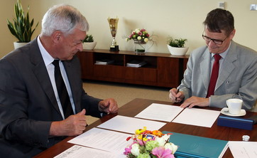 Umowę podpisali rektor PRz prof. dr hab. inż. Tadeusz Markowski oraz rektor PWSZ prof. dr hab. Grzegorz Przebinda.