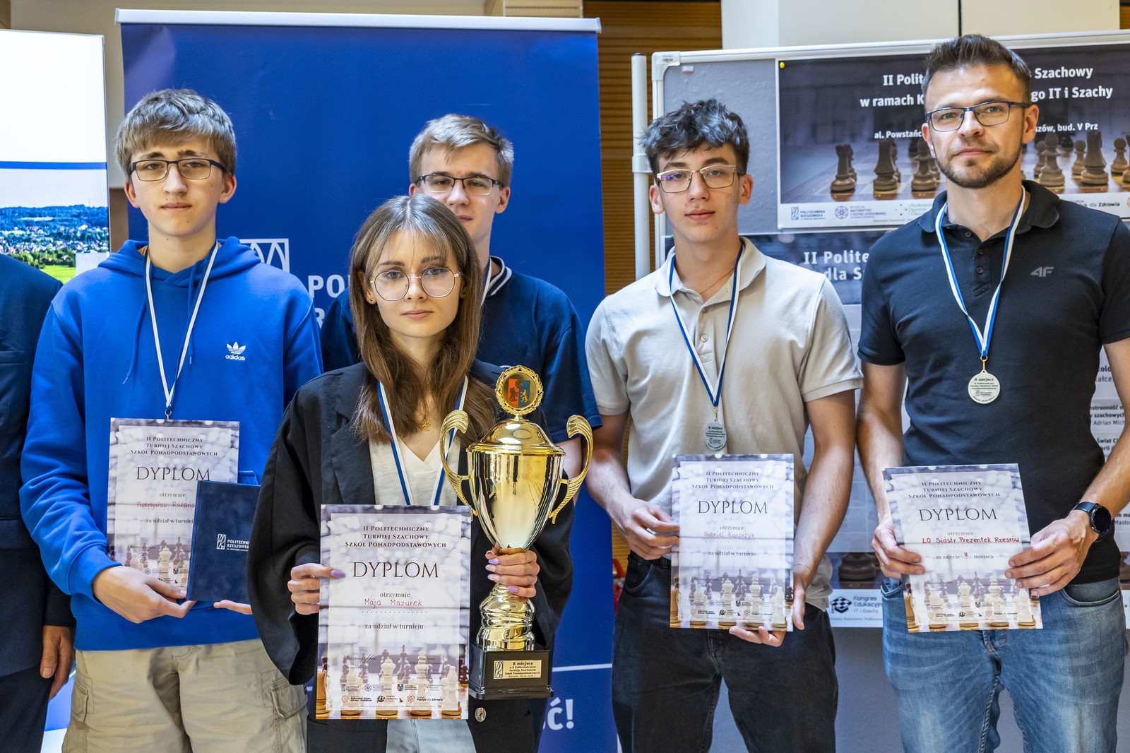 • szachownica nr 1: Karol Rzeszuto z Liceum Ogólnokształcącego Sióstr Prezentek w Rzeszowie, Piotr Buba z Zespołu Szkół Licealnych w Leżajsku, Olivier Ruciński z I Liceum Ogólnokształcącego w Rzeszowie,