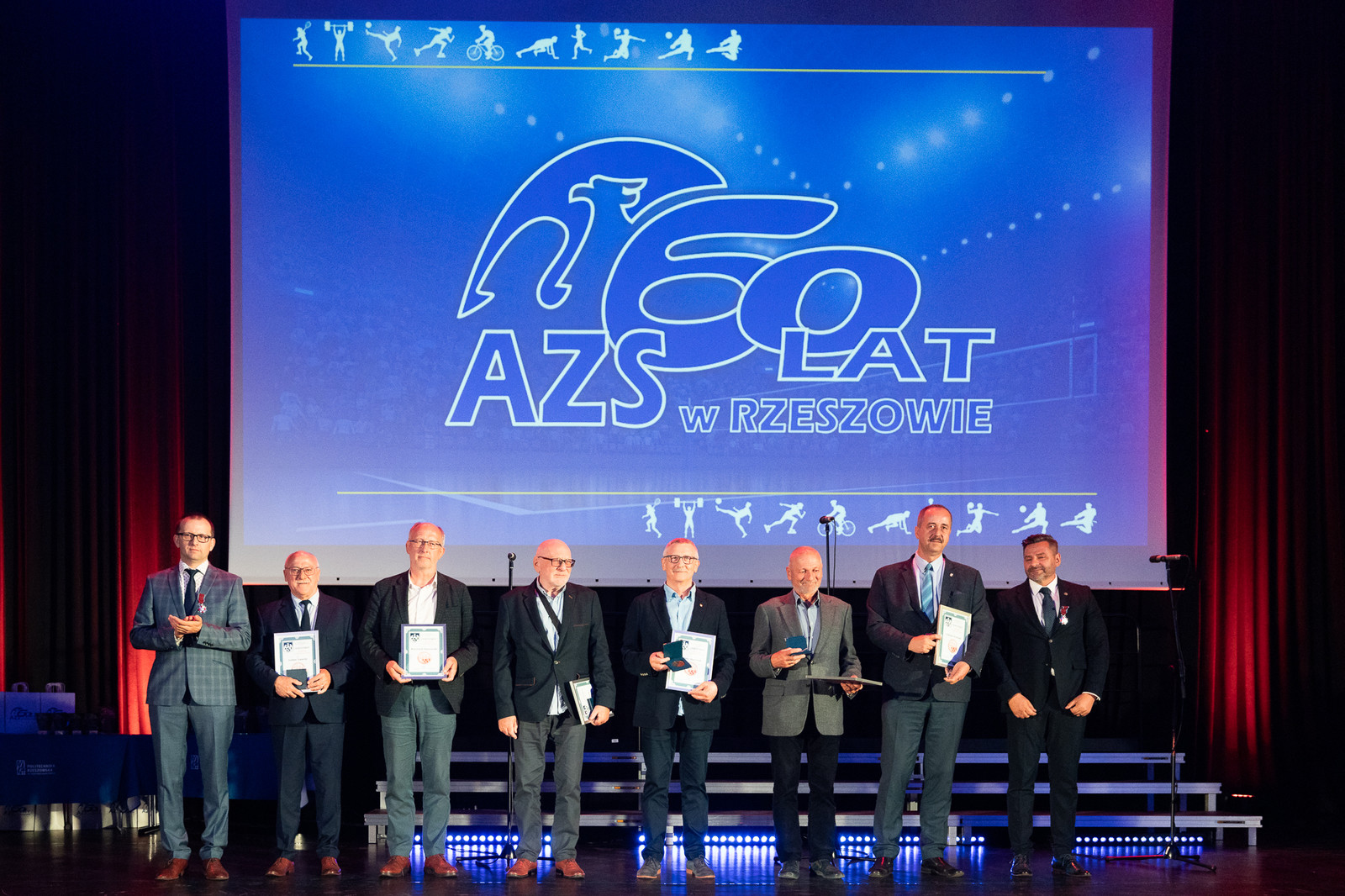 W uroczystości jubileuszowej wzięły udział ważne dla AZS osoby, m.in.: wicewojewoda podkarpacki Radosław Wiatr, członek Zarządu Województwa Podkarpackiego Stanisław Kruczek, przedstawiciel prezydenta Miasta Rzeszowa Tadeusz Szylar, prezes Zarządu Głównego AZS prof. dr hab. Alojzy Nowak wraz z członkami zarządu liczącego 32 osoby, sekretarz generealny AZS Dariusz Piektut, prezes AZS Rzeszów Janusz Zieliński, prorektorzy Politechniki Rzeszowskiej: prof. dr hab. inż. Jarosław Sęp, prof. dr hab. Grzegorz Ostasz, dr hab. inż. Lesław Gniewek, prof. PRz oraz prorektor Uniwersytetu Rzeszowskiego dr hab. Elżbieta Rokosz, rektor Państwowej Akademii Nauk Stosowanych w Krośnie dr hab. Zbigniew Barabasz, prof. PANS, dyrektor Biura Rektora Państwowej Wyższej Szkoły Techniczno-Ekonomicznej w Jarosławiu mgr Artur Świątek, prorektor Państwowej Akademii Nauk Stosowanych w Przemyślu dr Robert Oliwa, prorektor Wyższej Szkoły Informatyki i Zarządzania w Rzeszowie dr Małgorzata Gosek, a także około 300 byłych i obecnych zawodników, działaczy i sympatyków AZS oraz przedstawiciele mediów oraz firm wspierających codzienną działalność AZS.