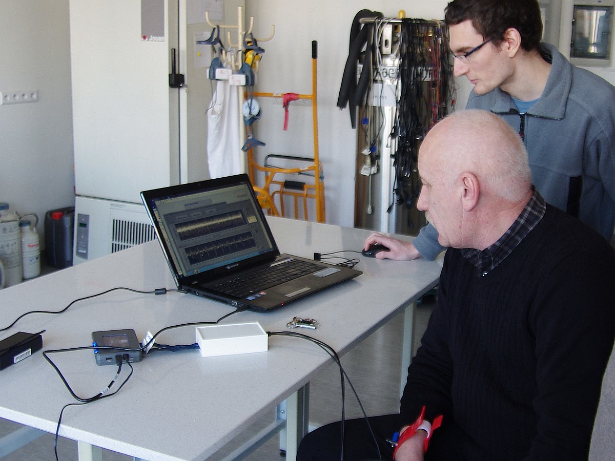 W ramach prac inżynierskich studenci realizowali bardzo praktyczne projekty. Michał Wanic przygotował pracę pt. „Budowa stanowiska badań i analizy potencjałów sercowych (EKG)”. Praca polegała na zbudowaniu układu pomiarowego do mierzenia sygnału EKG oraz stworzenia aplikacji w graficznym środowisku programowania LabVIEW. System ten oparty jest na metodzie trzypunktowej i składa się z dedykowanego układu odpowiadającego za wzmocnienie sygnału EKG. Program stworzony przez studenta, umożliwia obserwowanie zapisu elektrokardiografii w czasie rzeczywistym wraz z obliczaniem tętna, a także jego dokładną analizę. Opiekunami pracy byli dr inż. Gaweł Żyła, pracownik Laboratorium Fizyki Miękkiej Fazy Skondensowanej oraz mgr inż. Jacek Fal.