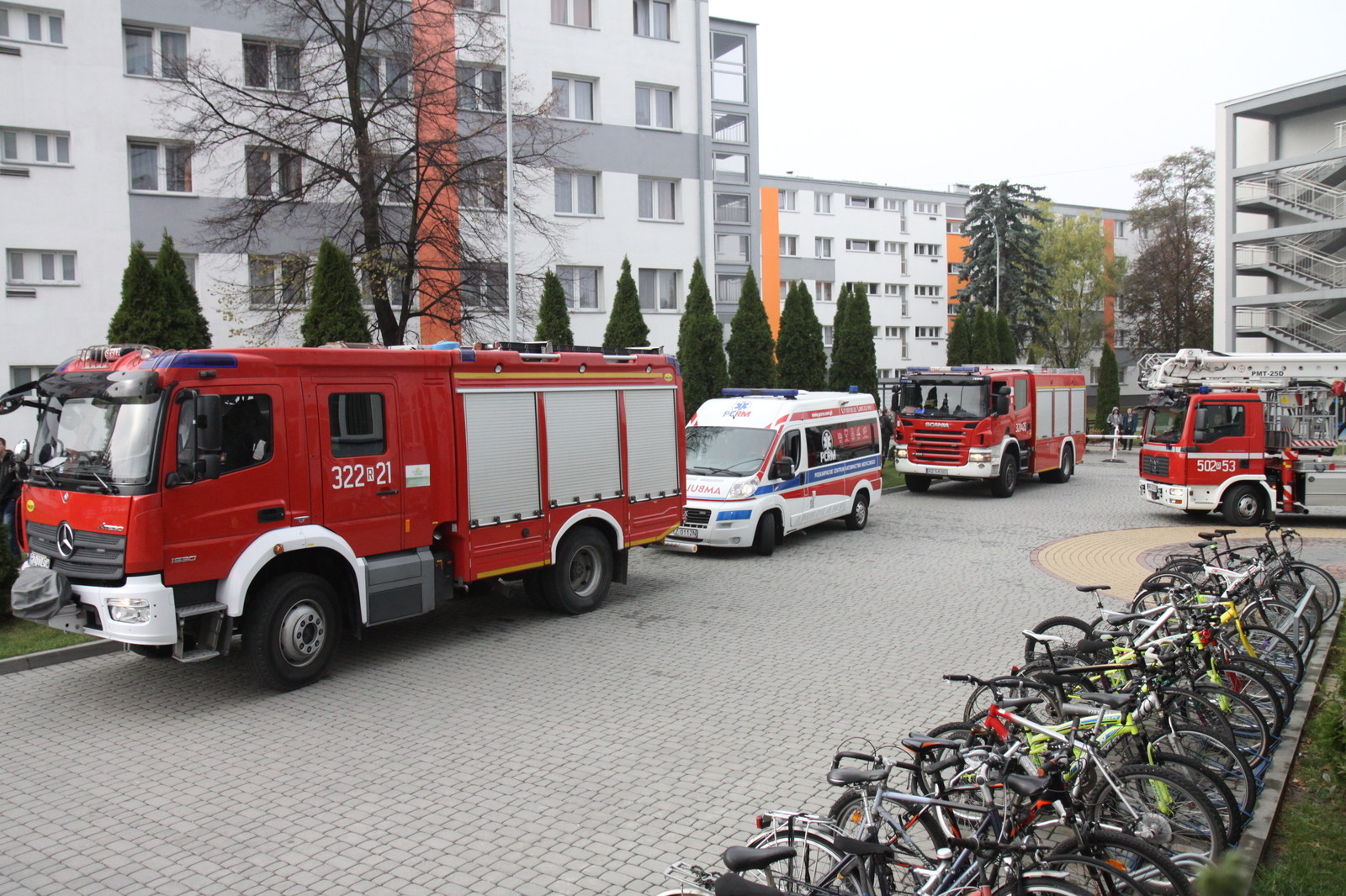 Opuszczanie budynku rozpoczęło się o godzinie 12:00. W ewakuacji wzięły udział trzy wozy strażackie Państwowej Straży Pożarnej oraz karetka Podkarpackiego Centrum Ratownictwa Medycznego. Całość procedury przebiegła sprawnie i szybko.